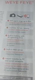 il dispositivo xsories weye feye permette di rendere le reflex Canon e Nikon senza predisposizione della connessione Wi-Fi (view finder, scatto remoto, trasferimento) di renderla possibile tramite l apposita applicazione per smartphone e pc, le caratteristiche sono peso di soli 89g, batteria integrata di 2100mAh, autonomia dichiarata dal produttore fino a 8 ore in modalità live view e 14 ore consultazione galleria (tramite web server), Wi-Fi 2.4 fino a 80 metri, 0.2 di latenza di scatto, inclusi nella confezione adattatore Wi-Fi, cavo usb, velcro per i fissaggio, manuale di istruzioni e garanzia, il prodotto è nuovo e sigillato quindi non è possibile fare prove o test, verificatene prima la compatibilità della vostra reflex sul sito del produttore xsories.