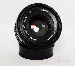 OBIETTIVO CANON 50 F 1.8 FD IN OTTIME CONDIZIONI CON TAPPO ANTERIORE E POSTERIORE ORIGINALI FILTRO SKYLIGHT FUNZIONANTE PERFETTAMENTE