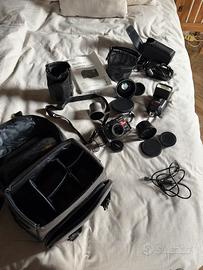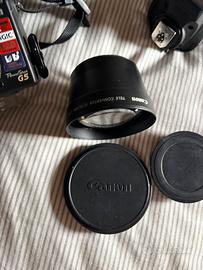 Vendo come da foto Canon modello power shot G5 perfettamente funzionante, con: •flash speedlite 430 EX II e sua custodia; • teleconverter TC-DC 8N 1.75x, con tappi e sua custodia; • lente Wide converter WD-DC 58N 0.7x con tappi e sua custodia; • adattatore conversione lente • cavo collegamento pc • cavo alimentazione • bauletto custodia con vari scomparti • manuale uso. Tutto originale e funzionante!