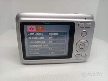 Fotocamera Canon Powershot A480 (PC1351) Funzionante con due pile ricaricabili da 1.5V (non incluse), il funzionamento con pile differenti non adeguate non è garantito. Flash funzionante. Si riceve ciò che è in foto. Canon PowerShot A480. Megapixel: 10 MP, Dimensione del sensore di immagine: 1/2.3", Tipo sensore: CCD, Risoluzione massima immagine: 3648 x 2736 Pixel. Zoom ottico: 3,3x, Zoom digitale: 4x, Lunghezza focale: 6.6 - 21.6 mm. Risoluzione massima video: 640 x 480 Pixel. Dimensioni diagonale schermo: 6,35 cm (2.5"). Peso: 140 g. Colore del prodotto: Argento Disponibili foto di esempio. NO GARANZIA, NO RESI.