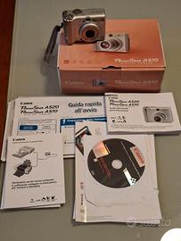 canon Powershot A510 in buono stato, funzionante, completa di imballi, istruzioni, cd...