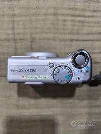 Macchina fotografica digitale compatta Canon PowerShot A520, in ottime condizioni e perfettamente funzionante. Ideale per chi cerca una fotocamera semplice e affidabile per catturare i momenti speciali.