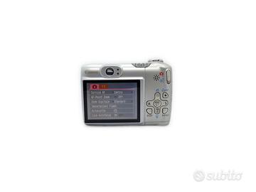Fotocamera digitale perfettamente funzionante , in condizioni estetiche buone con pochi segni d'usura . Pratica, leggera e maneggevole , scatta foto a 8 megapixel e zoom digitale 4x .