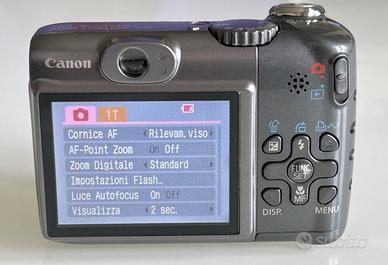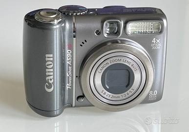 Canon PowerShot A590 IS 5,8-23,2mm f/2,6-5,5 (35-140mm equiv.) 8.0 megapixel in buone condizioni estetiche, piccoli segni di utilizzo / lente nitida, senza graffi completamente funzionante Specifications: Brand: Canon Model: Canon PowerShot A590 IS Tipo: Camera Digitale Formati file: JPEG Risoluzione: 8,0 megapixel Obiettivo: 5,8-23,2mm f/2,6-5,5 (35-140mm equiv.) Zoom: 4x Min. distanza fuoco: 0.05 metri Sensibilità ISO: 80 - 1600 Tempi di scatto: 15" - 1/2000 Memoria: SD / SDHC card Batteria: 2 x AA Peso: 225 g Dimensioni: 94 x 65 x 41 mm