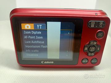 Fotocamera Canon Powershot A800 (PC1592) rossa Flash funzionante. Lo schermo presenta dei difetti (linea bianca al centro e piccola macchia nera nell'angolo in alto a destra), il difetto è dovuto allo schermo ed infatti le foto si vedono normalmente e senza problemi. Si riceve ciò che è in foto. Canon PowerShot A800. Tipologia fotocamera: Fotocamera compatta, Megapixel: 10 MP, Dimensione del sensore di immagine: 1/2.3", Tipo sensore: CCD, Risoluzione massima immagine: 3648 x 2736 Pixel. Zoom ottico: 3,3x, Zoom digitale: 4x, Lunghezza focale: 6.6 - 21.6 mm. Risoluzione massima video: 640 x 480 Pixel. Dimensioni diagonale schermo: 6,35 cm (2.5"). PictBridge. Peso: 186 g. Colore del prodotto: Rosso Disponibili foto di esempio. NO GARANZIA, NO RESI.