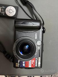 Vendo Canon Powershot G5 PC-1049 fotocamera digitale nera 5 MP, dotata di alimentatore e telecomando per esecuzione scatti a distanza. Perfettamente funzionante come da foto,non presenta segni di usura