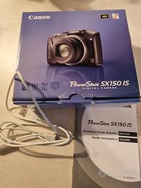 Canon Powershot SX150 IS DIGITALE zoom 12X 28mm, 14.1 mpxl, ricarica con 2 batterie stilo, usata poche volte, perfetta, scatola originale con cavetto e CD