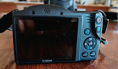 Fotocamera bridge Canon PowerShot SX400 IS in buone condizioni, usata ma funzionante perfettamente. Caratteristiche principali: Zoom ottico 30x (24–720mm) con stabilizzatore IS 16 Megapixel, processore DIGIC 4+ Flash integrato a scomparsa Modalità AUTO per scatti immediati Registrazione video Incluso nella vendita: Fotocamera con cinghia originale Tappo obiettivo con cordino Borsa rigida per il trasporto Caricabatteria Ideale per chi cerca una fotocamera versatile per viaggi, eventi e foto in lontananza, senza la complessità di una reflex.