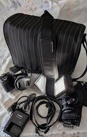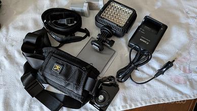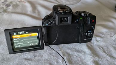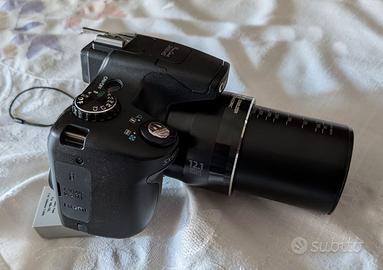 Insieme alla fotocamera regalo - 2 batterie supplementari - 1 lampada 48 led a batterie con relativi filtri, potente per riprese con scarsa luce, con attacco a slitta sulla fotocamera. - una borsa “Cullman” professionale per contenere camera e accessori - un paraluce - una cintura a rapido sgancio - Carica batterie originale Descrizione e caratteristiche tecniche (da opinioni in rete) La Canon PowerShot SX50 HS è una fotocamera bridge con un sensore BSI-CMOS da 12,1 megapixel e una risoluzione massima dell'immagine di 4000 x 3000 pixel. Il sensore ha una dimensione di 1/2.3 pollici e supporta i formati di immagine JPEG. La fotocamera è dotata di uno stabilizzatore d'immagine e supporta i formati di immagine JPEG. L'obiettivo ha un ingrandimento ottico di 50x e uno zoom digitale di 4x. La lunghezza focale minima equivalente a pellicola 35mm è di 24 millimetri, mentre quella massima è di 1200 millimetri. L'apertura massima è di 3.4 e sono supportati tre rapporti di aspetto: 3:2, 4:3 e 16:9. La fotocamera è in grado di scattare fotografie ad alta risoluzione con una vasta gamma di risoluzioni, da 384 x 480, a 4000 x 3000 pixel. Per quanto riguarda i file, è possibile salvare le immagini in formato JPEG e Raw, compresa la scelta d’immagazzinare entrambi i formati contemporaneamente. Video ed effetti speciali La Canon PowerShot SX50 HS è in grado di registrare video Full HD a 1.920×1.080 pixel con un frame rate di 24 fps o in qualità VGA a 30 fps. Permette anche di riprendere scene al rallentatore in qualità VGA a 120 fps o a 320×240 pixel a 240 fps. Oltre le normali modalità di scatto,la fotocamera permette di attivare alcuni effetti speciali. Il problema di questa fotocamera è proprio quello di avere il più potente zoom al mondo su una compatta. Quindi l’attenzione si concentra su questo elemento perdendo di vista tutti gli altri aspetti positivi e le tante modalità e funzioni che mette a disposizione e che la rendono realmente un'ottima fotocamera.