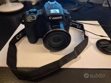 Canon Powershot SX 60 HS con sensore da 16 megapixel, zoom ottico 65x, video full hd, mirino elettronico e schermo inclinabile. Caricabatterie e batteria originale.