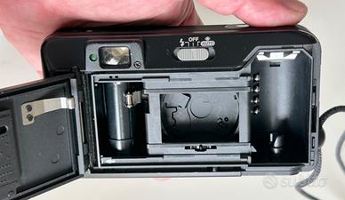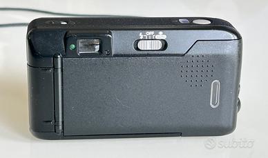 Canon Prima 5 Sure Shot Max, Autoboy Mini 38mm f/3.5 in buone condizioni estetiche, piccoli segni di utilizzo / lente nitida, senza graffi completamente funzionante Specifications: Brand: Canon Model: Canon Prima 5 (Sure Shot Max, Autoboy Mini) Tipo: 35mm Obiettivo: 38mm f/3.5 Sensibilità ISO: 25 - 3200 Min. distanza fuoco: 0.65m Tempi di scatto: 1/8s-1/250s, 1/60s-1/250s with flash on Batteria: 1 x CR123A Peso: 220 g Dimensioni: 125 x 68 x 38 mm