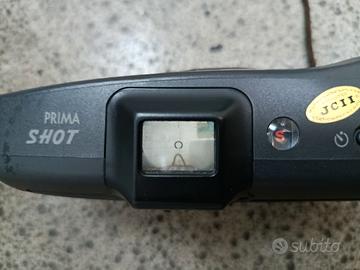 Fotocamera a pellicola 35mm Canon Prima Shot (o Sure Shot), ricercata per il mirino a pozzetto.