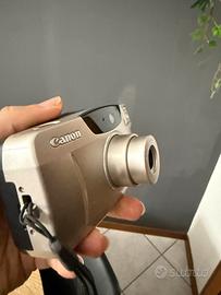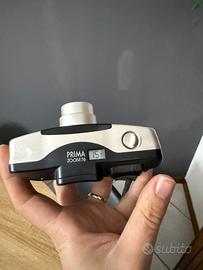 Macchina fotografica fotocamera Canon prima zoom 76. La fotocamera funziona ma non funziona il flash, l'obiettivo funziona perfettamente e la fotocamera scatta. Viene venduta con una pila CR123A