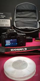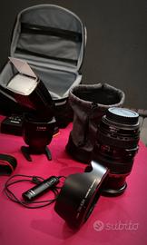 Vendo corredo professionale completo basato su sensore Full Frame, ideale per chi cerca qualità e affidabilità. Tutto il materiale è stato tenuto con cura maniacale senza segni evidenti di utilizzo. Corpo Macchina: -Canon EOS 6D con soli 36.716 scatti (37% della vita utile). -Sensore pulito, log errori: 0. -Meccanicamente perfetta. - Tracollo originale Canon -Obiettivo 1: Canon EF 24-105mm f/4 L IS USM (Serie professionale) con paraluce e custodia originali Canon. - Filtro Polarizzatore Hoya da 77mm. -Obiettivo 2: Canon EF 50mm f/1.4 USM (Ottica fissa luminosissima per ritratti), completo di custodia e scatola originali. Praticamente nuovo. -Illuminazione: Due Flash Canon Speedlite 580EX (Alta potenza) poco utilizzo, come nuovi. -Supporto: Monopiede professionale Manfrotto 681B (Estremamente robusto), usato pochissimo. ----Accessori---- -Memory Wallet Lowepro (20 slot), -telecomando RS-60E3, -staffa flash Polaroid (in scatola originale mai usato), -2 batterie,caricabatterie originale Canon+ caricabatterie Patona. Borsa: Vivanco tecnica inclusa.