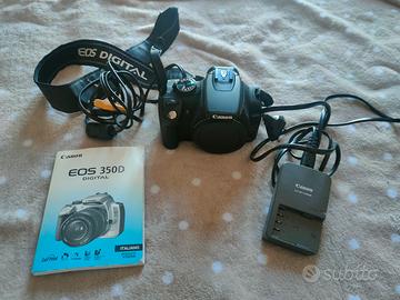 Vendo macchina fotografica digitale Canon 350D comprensiva di tracolla originale, batteria e caricabatteria Canon, manuale di istruzione, collegamento tv e borsa porta fotocamera. Vendo per inutilizza, tenuta in ottimo stato.