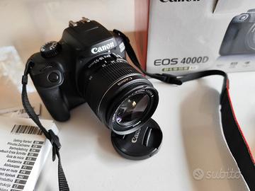 Vendo reflex Canon EOS 4000D con obbiettivo 18-55 f.3,5-5,6 III serie. Fotocamera con circa 6000 scatti, pari al nuovo, senza un graffio. Ottima per chi inizia. Scambio a mano, non spedisco