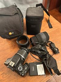 Canon 550d con obiettivo sigma 70-300 piu polsiera e sacche