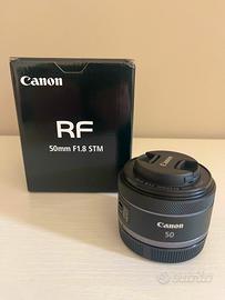 Obiettivo Canon RF 50 mm F/1.8 STM in perfette condizioni, pari al nuovo.