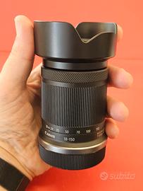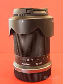 obiettivo mirrorless Canon rf 18-150 (29-240mm equivalente a 35 mm), acquistato a dicembre 2024, perfetto in tutto, usato pochissimo, vendo per cambio ottica. compresi tappi anteriore e posteriore, paraluce a petalo e filtro UV K&F.