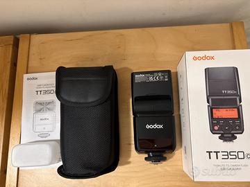 Canon RP in ottimo stato con scatola originale, manuale, batteria, caricatore, tracolla + Flash Godox TT350c con scatola originale e accessori.
