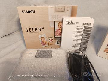 Vendo Canon SELPHY CP1300 completa di scatola originale, manuali e accessori, insieme al kit originale RP-108 (108 fogli + cartucce colore).