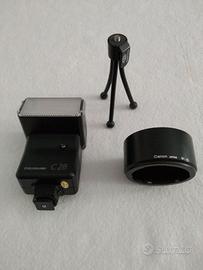 Set macchina fotografica composta da: Fotocamera Reflex CANON AT-1 analogica con tracolla - Obiettivo 50 mm.- Obiettivo grandangolo 28 mm. - Teleobiettivo Macro-Zoom 75-300 mm. - Flash elettronico automatico-manuale Cullmann C28 - Cavalletto treppiede regolabile - Mini cavalletto - parasole per obiettivi. Si regala borsa porta obbiettivi e un rullino Kodak da 36 foto 200 asa. Tutto in ottime condizioni. Telefonare Cell. 3474189754