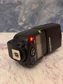 OTTIMO FLASH, piccolo e maneggevole, ma potente allo stesso tempo. Ricezione radio integrata. In accoppiata, REGALO, non uno ma due trigger Yongnuo, nello specifico i modelli “YN-E3-RT” e “YN-E3-RT II” perfettamente funzionanti e testati con l’unità flash.
