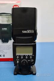 Canon Speedlite 580 EX II con custodia originale e scatola. Perfettamente funzionante, presenta una piccola riga nella parte alta del display.
