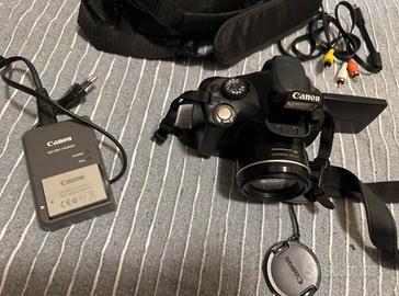 canon SX30 IS, perfettamente funzionante! compresa di carica batterie, cavi per collegamento pc/tv, comoda borsetta che finge da custodia, e travolla “Canon”
