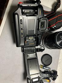 Vendo Canon T90, una delle reflex analogiche più avanzate degli anni ’80, in ottimo stato, completa di tre obiettivi Canon ✅ Dotazione: * Corpo Canon T90, perfettamente funzionante * Obiettivo Canon FD 50mm f/1.8, lenti pulite, ghiere fluide * Obiettivo Canon FD 28/2.8 * Obiettivo Canon FD 135/3.5 * Display LCD funzionante, nessun difetto segnalato * Corpo solido, usata da professionista, tenuta bene 📸 La Canon T90 è considerata l’ultima grande reflex a pellicola prima dell’era autofocus: esposizione automatica, avanzamento motorizzato integrato, costruzione professionale.