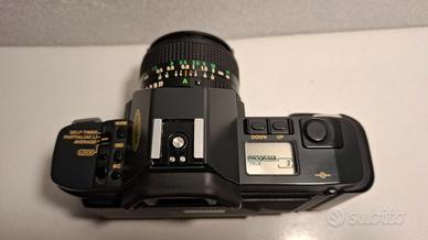Set completo macchina fotografica Canon T70 FD con Command Back + obiettivi 28, 50, 70-210 + flash Canon, duplicatore focale Vivitar e vari filtri.
