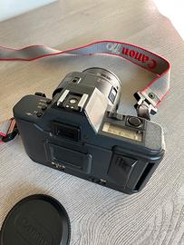 Vendo Canon T80 con obiettivo 35-70 f:3,5-4,5 originale Canon. Una delle prime autofocus. Tenuta benissimo e perfettamente funzionante. Regalo flash manuale Achiever come da foto e borsa contenitiva del tutto. Prezzo trattabile.