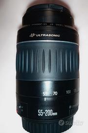 Vendo obiettivo Canon Zoom Lens EF 55-200mm f/4.5-5.6 ULTRASONIC, in ottime condizioni estetiche e funzionali. L'obiettivo è stato usato con cura e funziona perfettamente su tutte le fotocamere Canon con attacco EF. Autofocus: Motore Ultrasonico (USM)