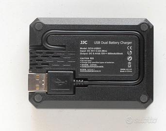 Caricabatterie dual JJC per Nikon EN-EL14/14a. Con presa USB. Può caricare 2 batterie contemporaneamente. Con indicatore di ricarica. Solo caricabatterie senza batteria (la foto è solo di esempio). In ottimo stato, pari al nuovo.