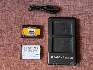 Caricabatterie doppio Patona + 2 batterie per Nikon P900 usato ma in ottimo stato Per batterie Nikon EN-EL23