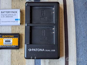 Caricabatterie doppio Patona + 2 batterie per Nikon P900 usato ma in ottimo stato Per batterie Nikon EN-EL23