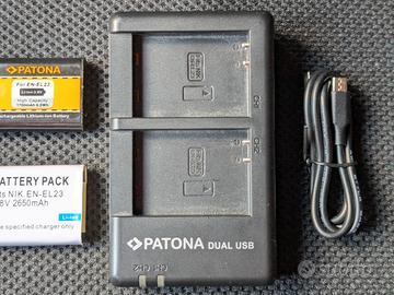 Caricabatterie doppio Patona + 2 batterie per Nikon P900 usato ma in ottimo stato Per batterie Nikon EN-EL23