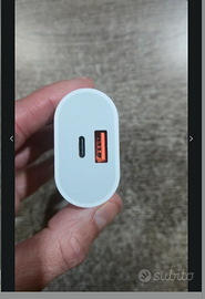 Vendo Caricatore veloce 25w 2 uscite usbc 25w usba 15 w bianco. Nuovo. Caricatore fast da 25 w usbc e da 15w usba . 2 uscite che permettono di caricare 2 dispositivi insieme. Perfetto per telefoni, tablet , cuffie , accessori vari. Supporta la ricarica rapida . Con chip integrato contro le sovratenzioni , i sovraccarichi , sbalzi di corrente, surriscaldamento e cortocircuito. Di alta qualità e durata .