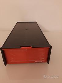 Due caricatori da 50 posizioni ciascuno per proiettori diapositive standard Marca Canon. Compresi 100 telaietti in plastica rigida e contenitore caricatori in plastica.