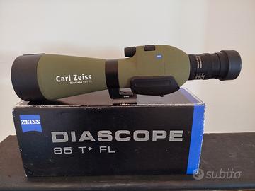 telescopio CARL ZEISS DIASCOPE 85 T* FL pari al nuovo, con oculare 20-60. Su richiesta cavalletto Manfrotto.