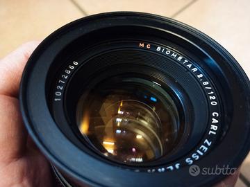 Obiettivo Carl Zeiss da ritratto, ottica splendida per resa, in ottime condizioni, con paraluce in metallo.