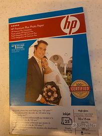 2 Confezioni di carta fotografica HP Premium Plus. Finitura: Lucida, Dimensioni: 10 x 15 cm ; Grammatura: 300 g/m²; Asciugatura istantanea e resistenza all'acqua; Compatibile con tutte le stampanti a getto d'inchiostro