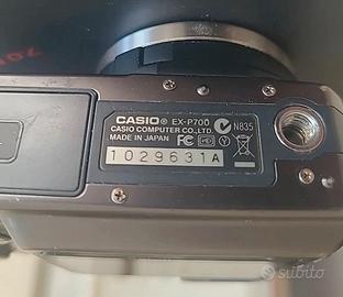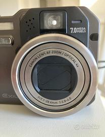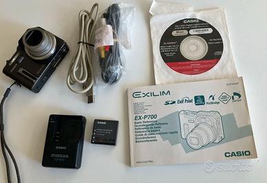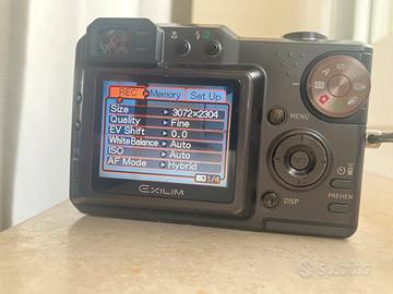 Casio Exilim Pro Ex- P700 Fotocamera Digitale. Obiettivo Canon. Usata Pochissimo. Perfettamente funzionante. Nella sua scatola originale con varie schede SD, Batteria-con telecomando a distanza Sensor Type: 1/1.8" CCD Resolution: 7.2 megapixels (total), 7.1 megapixels (effective) Color Filter: RGB Primary Color Filter Image Sizes: 3072 x 2304 pixels Sensitivity: Auto, ISO 50, 100, 200, 400 equivalents Lens: 4x optical zoom (33 - 132 mm equivalent)