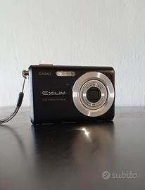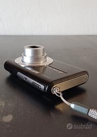 Fotocamera digitale ultra compatta Y2K Casio Exilim EX-Z75 in colore nero con cinturino da polso.