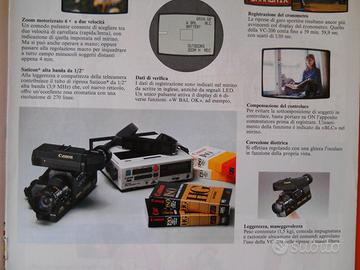 Vendesi catalogo Canon telecamere (VC-200 e VC-20) e videoregistratori portatili VHS (VR-30 + VT-30). 32 pagine, in buono stato ma con un piccolo ritaglio rettangolare in ultima di copertina (asportazione del loghetto Canon). 12 pagine, in buono stato ma con un piccolo ritaglio rettangolare in ultima di copertina.