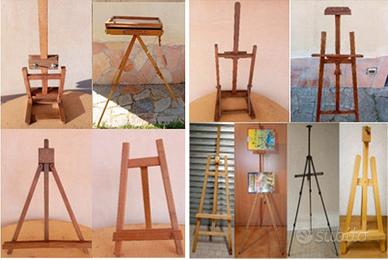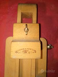 "Vendo, come da foto, cavalletto da campagna Winsor&Newton in faggio massiccio di altissima qualità, solido ed eccellente. Regolazione dell'altezza e dell'inclinazione tramite dadi ad alette. Si prestano anche ad essere utilizzati come espositori da vetrina! - Costruito in massello di faggio oliato - Regolazione dell'altezza del portatelaio tramite dadi ad alette Dimensioni in cm: Larghezza: 29, Profondità 34, Portatelaio 28,5x 3,3, Altezza massima telaio 62, Altezza d'ingombro min76 m - max. 103. Usato pari a nuovo. Euro 30.