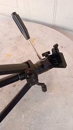 Treppiede stabile e versatile, ideale per fotocamere o smartphone. Facile da regolare in altezza. - Struttura in metallo nero. - Testa orientabile. - Gambe regolabili.