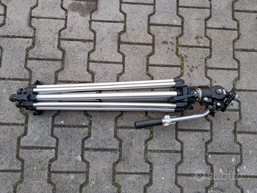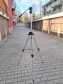 Cavalletto Manfrotto mod.028, adatto per fotocamere e videocamere di grandi formati,stabilissimo e robusto con testa fluida a 3 movimenti dotato di cremagliera per sollevare la colonna ,struttura in alluminio con tre sezioni,altezza massima 190cm. usato in ottime codizioni.
