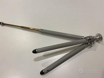 Vendo Cavalletto Treppiede OMC-W, in acciaio, con gambe telescopiche in ottone, anni 70, perfetto, come nuovo, altezza massima 110 cm, minima 20 cm. Insieme regalo 2 cavi di scatto.