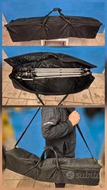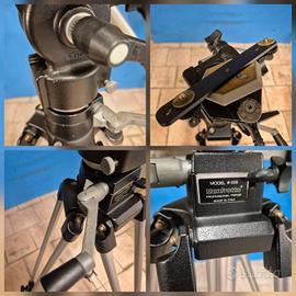 Cavalletto Manfrotto mod.028, adatto per fotocamere e videocamere di grandi formati,stabilissimo e robusto con testa fluida a 3 movimenti dotato di cremagliera per sollevare la colonna ,struttura in alluminio con tre sezioni,altezza massima 190cm. usato in ottime codizioni. Presente barra su testa per montaggio simultaneo di due corpi/accessori.